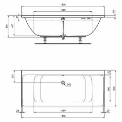BAUHAUS Geberit Renova Nr. 1 Comprimo Badewanne Linksseitig, 160 X 75/50 X 44 Cm, Sanitäracryl, Weiß