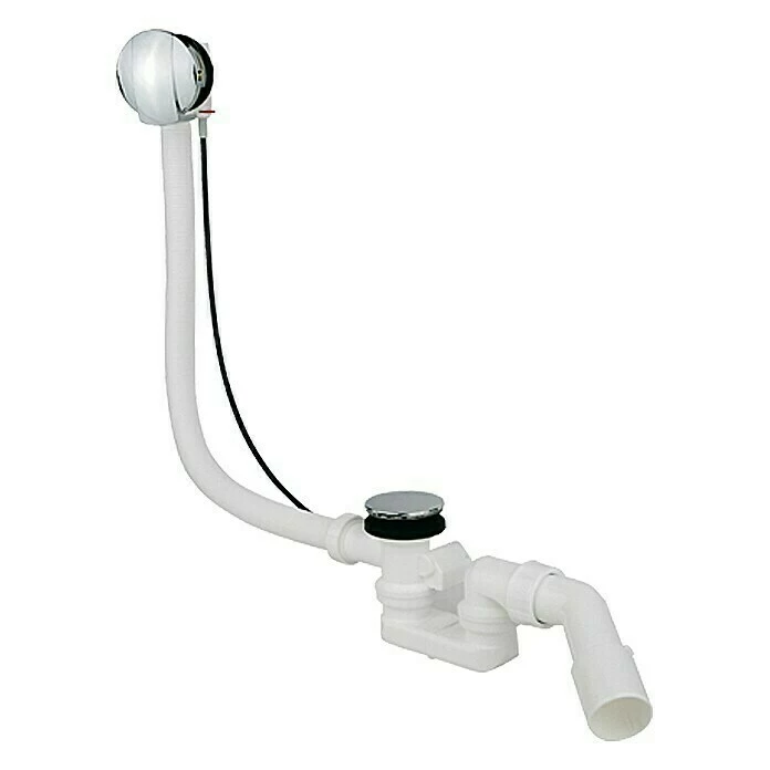 Diese Ab- und Überlaufgarnitur mit Excenter ist für handelsübliche Badewannen geeignet. Das Überlaufrohr ist flexibel und damit passgenau und problemlos zu montieren. Am Überlauf ist ein Drehknopf befestigt mit dem sich der Stöpsel zum Ablauf öffnen lässt. Somit muss nicht in das Wasser gegriffen werden, um den Auslass zu öffnen. Das Abgangsrohr hat einen 40 mm und einen 50 mm Anschluss und kann problemlos mit HT-Rohren verlängert werden.