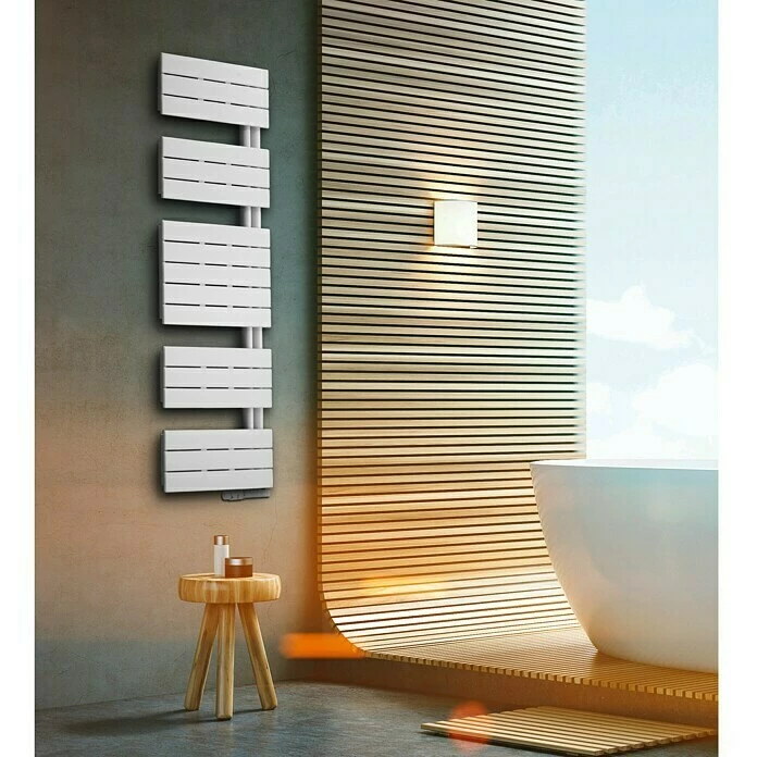 Der Badheizkörper Atakama von Camargue ist seitlich offen gestaltet und vermittelt so den Eindruck eines exklusiven Interieurs. Er sorgt für eine angenehme Temperierung Ihres Wohnraumes und kann auch als idealer Handtuchwärmer und Handtuchtrockner verwendet werden. Der Badheizkörper kann innerhalb jeder gängigen Zentralheizung eingebaut werden und ist mit jedem handelsüblichen Thermostatventil oder jeder gängigen 50 mm Mittenanschlussgarnitur kombinierbar. Der verwendete 50 mm Mittelanschluss sorgt dabei für die notwendige Flexibilität in Bezug auf den Einbau. Zusätzlich kann der Designheizkörper auch mit einem Heizstab, für den Anschluss an das Stromnetz, betrieben werden. Der Badheizkörper ist aus kohlenstofffreiem Stahl gefertigt und hochwertig pulverbeschichtet. Die Pulverbeschichtung sorgt hier für eine unempfindliche Oberfläche mit edler Optik.