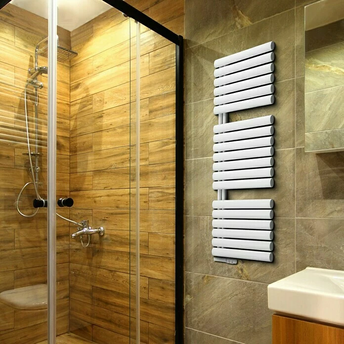 Der Badheizkörper Flag Bis von Camargue ist seitlich offen gestaltet und vermittelt durch seine leicht abgerundeten horizontalen Profile den Eindruck eines exklusiven Interieurs. Er sorgt für eine angenehme Temperierung Ihres Wohnraumes und kann auch als idealer Handtuchwärmer und Handtuchtrockner verwendet werden. Der Badheizkörper kann innerhalb jeder gängigen Zentralheizung eingebaut werden und ist mit jedem handelsüblichen Thermostatventil oder jeder gängigen 50 mm Mittenanschlussgarnitur kombinierbar. Der verwendete 50 mm Mittelanschluss sorgt dabei für die notwendige Flexibilität in Bezug auf den Einbau. Zusätzlich kann der Designheizkörper auch mit einem Heizstab, für den Anschluss an das Stromnetz, betrieben werden. Der Badheizkörper ist aus kohlenstofffreiem Stahl gefertigt und hochwertig pulverbeschichtet. Die Pulverbeschichtung sorgt hier für eine unempfindliche Oberfläche mit edler Optik.