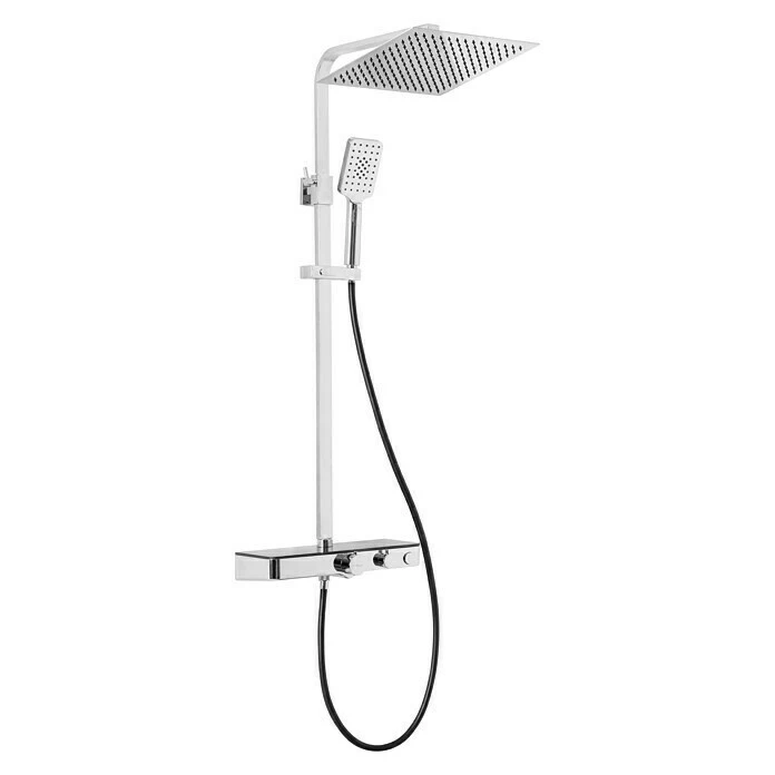 Das Überkopfbrause-Set Grande Vita von Camargue ist die perfekte Lösung für ein luxuriöses Duscherlebnis mit Kopf- und Handbrause. Mit diesem Thermostat-Duschsystem können Sie vollkommen entspannt in den Tag starten. Das komfortable Komplettset besteht aus einer superflachen Edelstahl-Kopfbrause und einer vollverchromten Handbrause. Natürlich ist auch ein höhenverstellbares Steigrohr (80 – 120 cm) und ein Brauseschlauch Bestandteil des Duschsystems. Mithilfe der beständigen Thermostatarmatur kann die Wunsch-Temperatur in Bruchteil einer Sekunde erreicht und über die gesamte Duschdauer gehalten werden. Auf der eleganten Ablagefläche aus Glas lassen sich Duschgel und Shampoo dekorativ platzieren. Sehr praktisch sind die Antikalk-Noppen, die Kalkablagerungen an den Strahlöffnungen der Brausen dauerhaft verhindern.