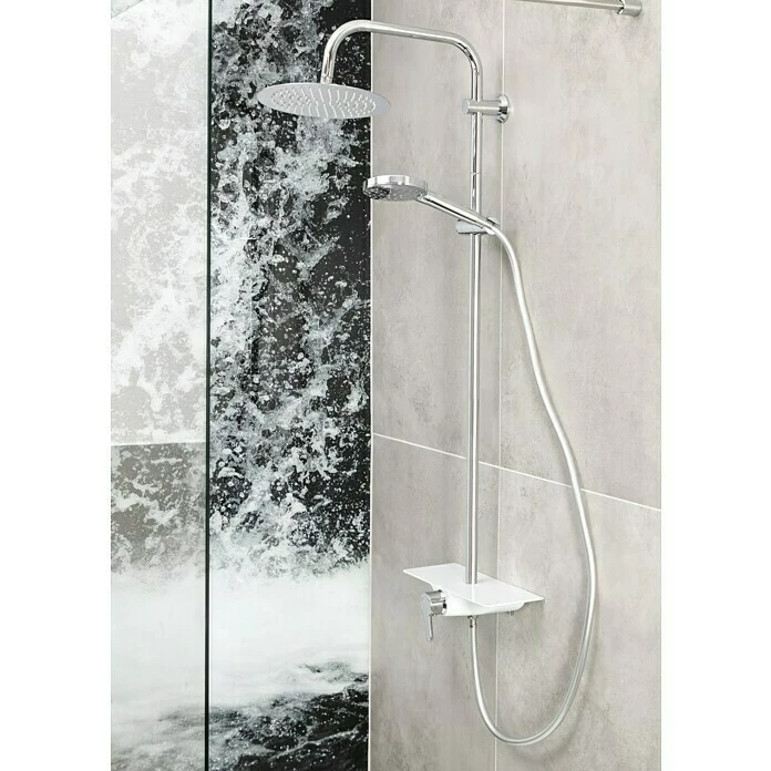 Das Überkopfbrause-Set TEXAS von Camargue ist die perfekte Lösung für ein luxuriöses Duscherlebnis mit Kopf- und Handbrause. Das komfortable Komplettset besteht aus einer Kopfbrause, einer vollverchromten Handbrause und einem höhenverstellbaren Steigrohr (80 – 120 cm). Das Easy Clean System verhindert nachhaltig Kalkablagerungen an den Düsen. Des Weiteren sind eine Einhebelarmatur inklusive Glasablage und ein Brauseschlauch Bestandteil des Duschsystems. Letzterer ist mit ½“ Anschlüssen versehen und passt auf jeden handelsüblichen Anschluss. Dank der Anti-Twist-Eigenschaft wird das lästige Verdrehen des Schlauchs verhindert. Das erforderliche Montagematerial ist bereits im Lieferumfang enthalten.