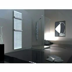 Der Design-Heizkörper Broken Mirror 3 ist durch sein exklusives Design ein Blickfang in jedem Wohnraum. Durch die Verwendung von Premium-Pulverlacken aus deutscher Herstellung wird eine exquisite Oberfläche kreiert, welche die Fingerabdrucksempfindlichkeit vermindert und gleichzeitig durch die diffuse Lichtbrechung an der Oberfläche dem Heizkörper ein edles Finish verleiht. Das kreative Designelement wird mit neuester Lasertechnologie und anschließender Bearbeitung durch hochmoderne CNC – gesteuerte Maschinen hergestellt. Der Anschluss für den Vor- und Rücklauf des Heizkörpers befindet sich unten mittig im Abstand von 50 mm. Das Designobjekt ist ausschließlich zum Anschluss an eine vorhandene Heizungsanlage geeignet.