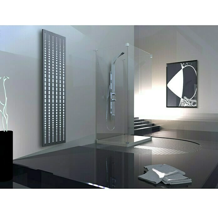 Der Design-Heizkörper Broken Mirror 3 ist durch sein exklusives Design ein Blickfang in jedem Wohnraum. Durch die Verwendung von hochwertigem, mattiertem Edelstahl aus deutscher Herstellung wird eine exquisite, leicht rauhe Oberfläche kreiert, welche die Fingerabdrucksempfindlichkeit vermindert und gleichzeitig durch die diffuse Lichtbrechung an der Oberfläche dem Heizkörper ein edles Finish verleiht. Das kreative Designelement wird mit neuester Lasertechnologie und anschließender Bearbeitung durch hochmoderne CNC – gesteuerte Maschinen hergestellt. Der Anschluss für den Vor- und Rücklauf des Heizkörpers befindet sich unten mittig im Abstand von 50 mm. Das Designobjekt ist ausschließlich zum Anschluss an eine vorhandene Heizungsanlage geeignet.