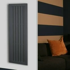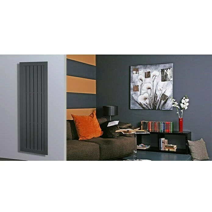 Der Design-Heizkörper Frame ist durch sein exklusives Design ein Blickfang in jedem Wohnraum. Durch die Verwendung von Premium-Pulverlacken aus deutscher Herstellung wird eine exquisite Oberfläche kreiert, welche besonders fingerabdrucksunempfindlich ist und gleichzeitig durch die Lichtbrechung an der Oberfläche dem Heizkörper ein edles Finish verleiht. Das kreative Designelement wird mit neuester Lasertechnologie und anschließender Bearbeitung durch hochmoderne CNC – gesteuerte Maschinen hergestellt. Der Anschluss für den Vor- und Rücklauf des Heizkörpers befindet sich unten mittig im Abstand von 50 mm. Das Designobjekt ist ausschließlich zum Anschluss an eine vorhandene Heizungsanlage geeignet. Ebenfalls erhältlich in der Farbe Weiß.