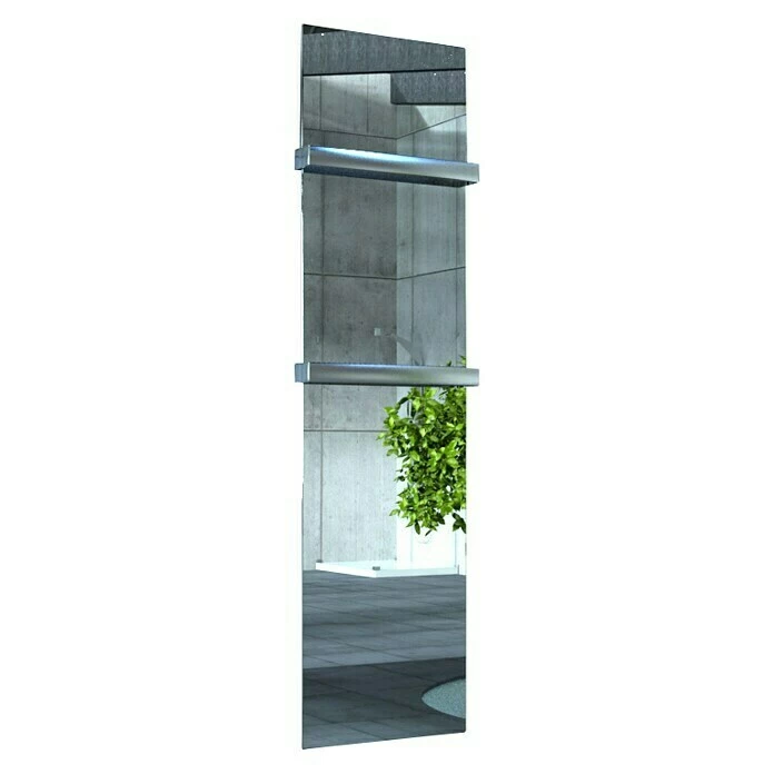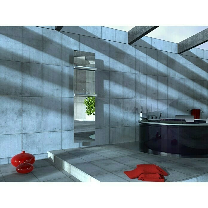 Der Design-Heizkörper Mirror 3 ist durch sein exklusives Design ein Blickfang in jedem Badezimmer sowie Wohnraum. Durch die Verwendung von hochwertigem, mattiertem Edelstahl aus deutscher Herstellung und einer exquisiten Oberfläche aus Komplettspiegel wird dem Heizkörper ein edles Finish verliehen. Das kreative Designelement wird mit neuester Lasertechnologie und anschließender Bearbeitung durch hochmoderne CNC – gesteuerte Maschinen hergestellt. Der Anschluss für den Vor- und Rücklauf des Heizkörpers befindet sich unten mittig im Abstand von 50 mm. Das Designobjekt ist ausschließlich zum Anschluss an eine vorhandene Heizungsanlage geeignet.
