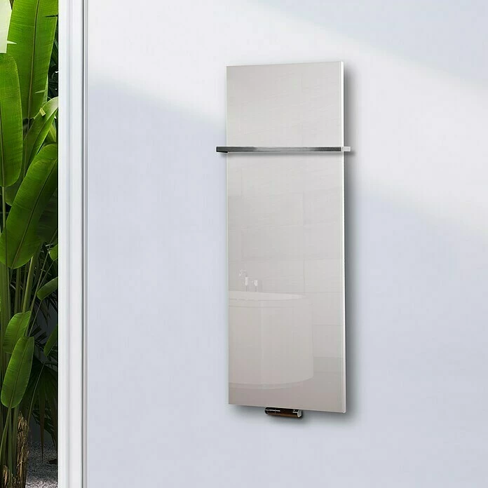 Der Design-Heizkörper Montevideo ist durch sein exklusives Design mit Echtglas-Front ein Blickfang in jedem Wohnraum oder Badezimmer. Durch die Verwendung von Premium-Pulverlacken aus deutscher Herstellung wird eine exquisite Oberfläche kreiert, welche die Fingerabdrucks-Empfindlichkeit vermindert und gleichzeitig durch die diffuse Lichtbrechung an der Oberfläche dem Heizkörper ein edles Finish verleiht. Das kreative Designelement wird mit hochmodernen CNC – gesteuerten Maschinen hergestellt. Der Anschluss für den Vor- und Rücklauf des Heizkörpers befindet sich unten mittig, im Abstand von 50 mm. Geeignet zum Anschluss an eine Heizungsanlage oder Strombetrieb mit elektrischem Heizstab bis 500 Watt. Im Lieferumfang enthalten sind eine Wandhalterung, Schrauben, Dübel, ein Blindstopfen und ein Entlüftungsventil. Ein Mittelanschlussblock ist nicht im Lieferumfang enthalten, kann aber separat bei uns bestellt werden.