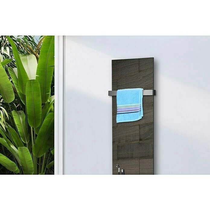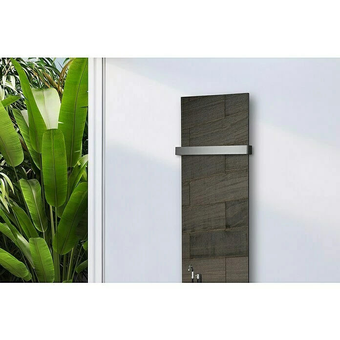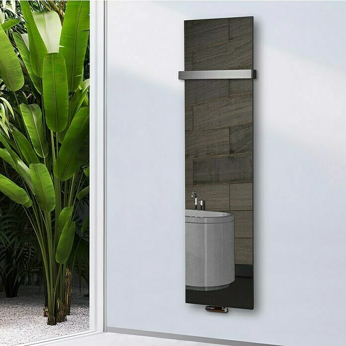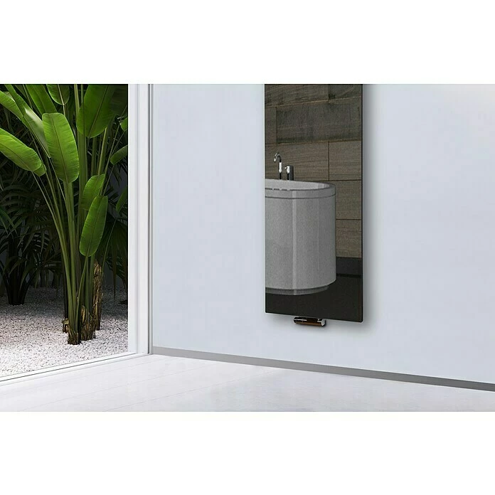 Der Design-Heizkörper Montevideo ist durch sein exklusives Design mit Echtglas-Front ein Blickfang in jedem Wohnraum oder Badezimmer. Durch die Verwendung von Premium-Pulverlacken aus deutscher Herstellung wird eine exquisite Oberfläche kreiert, welche die Fingerabdrucks-Empfindlichkeit vermindert und gleichzeitig durch die diffuse Lichtbrechung an der Oberfläche dem Heizkörper ein edles Finish verleiht. Das kreative Designelement wird mit hochmodernen CNC – gesteuerten Maschinen hergestellt. Der Anschluss für den Vor- und Rücklauf des Heizkörpers befindet sich unten mittig, im Abstand von 50 mm. Geeignet zum Anschluss an eine Heizungsanlage oder Strombetrieb mit elektrischem Heizstab bis 500 Watt. Im Lieferumfang enthalten sind eine Wandhalterung, Schrauben, Dübel, ein Blindstopfen und ein Entlüftungsventil. Ein Mittelanschlussblock ist nicht im Lieferumfang enthalten, kann aber separat bei uns bestellt werden.