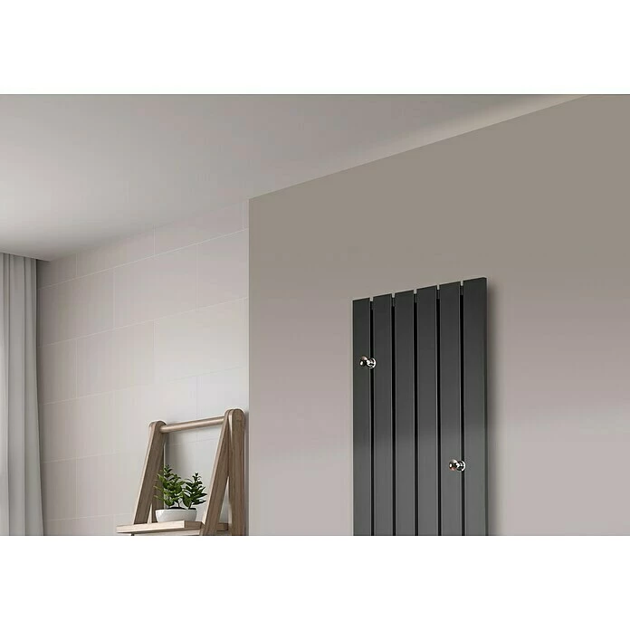 Der Design-Heizkörper Peking ist durch sein exklusives Design ein Blickfang in jedem Wohnraum oder Badezimmer. Durch die Verwendung von Premium-Pulverlacken aus deutscher Herstellung wird eine exquisite Oberfläche kreiert, welche die Fingerabdrucks-Empfindlichkeit vermindert und gleichzeitig durch die diffuse Lichtbrechung an der Oberfläche dem Heizkörper ein edles Finish verleiht. Das kreative Designelement wird mit hochmodernen CNC – gesteuerten Maschinen hergestellt. Der Anschluss für den Vor- und Rücklauf des Heizkörpers befindet sich unten mittig, im Abstand von 50 mm. Geeignet zum Anschluss an eine Heizungsanlage oder Strombetrieb mit elektrischem Heizstab bis 500 Watt. Im Lieferumfang enthalten sind eine Wandhalterung, Schrauben, Dübel, ein Blindstopfen und ein Entlüftungsventil. Ein Mittelanschlussblock ist nicht im Lieferumfang enthalten, kann aber separat bei uns bestellt werden.