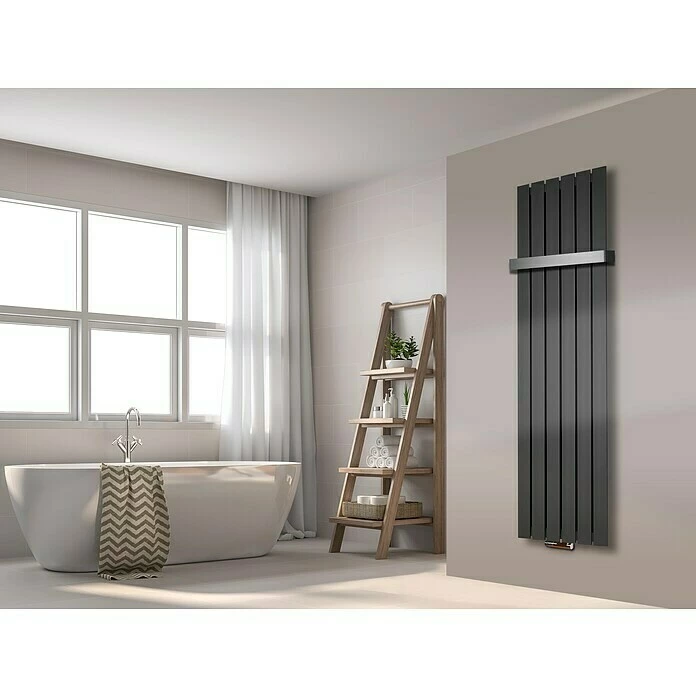 Der Design-Heizkörper Peking ist durch sein exklusives Design ein Blickfang in jedem Wohnraum oder Badezimmer. Durch die Verwendung von Premium-Pulverlacken aus deutscher Herstellung wird eine exquisite Oberfläche kreiert, welche die Fingerabdrucks-Empfindlichkeit vermindert und gleichzeitig durch die diffuse Lichtbrechung an der Oberfläche dem Heizkörper ein edles Finish verleiht. Das kreative Designelement wird mit hochmodernen CNC – gesteuerten Maschinen hergestellt. Der Anschluss für den Vor- und Rücklauf des Heizkörpers befindet sich unten mittig, im Abstand von 50 mm. Geeignet zum Anschluss an eine Heizungsanlage oder Strombetrieb mit elektrischem Heizstab bis 500 Watt. Im Lieferumfang enthalten sind eine Wandhalterung, Schrauben, Dübel, ein Blindstopfen und ein Entlüftungsventil. Ein Mittelanschlussblock ist nicht im Lieferumfang enthalten, kann aber separat bei uns bestellt werden.