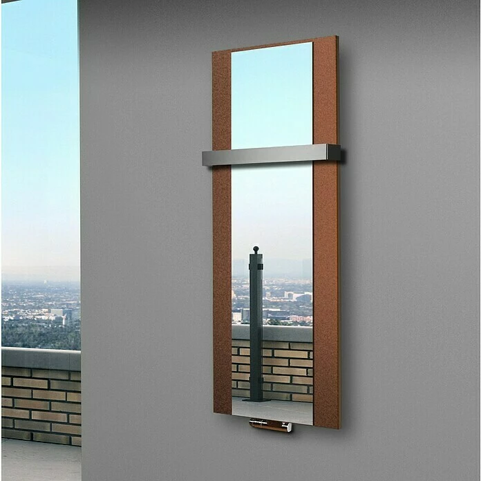Der Design-Heizkörper Singapur ist durch sein exklusives Design mit mittig integriertem Spiegel ein Blickfang in jedem Wohnraum oder Badezimmer. Durch die Verwendung von Premium-Pulverlacken aus deutscher Herstellung wird eine exquisite Oberfläche kreiert, welche die Fingerabdrucks-Empfindlichkeit vermindert und gleichzeitig durch die diffuse Lichtbrechung an der Oberfläche dem Heizkörper ein edles Finish verleiht. Das kreative Designelement wird mit hochmodernen CNC – gesteuerten Maschinen hergestellt. Der Anschluss für den Vor- und Rücklauf des Heizkörpers befindet sich unten mittig, im Abstand von 50 mm. Geeignet zum Anschluss an eine Heizungsanlage oder Strombetrieb mit elektrischem Heizstab bis 500 Watt. Im Lieferumfang enthalten sind eine Wandhalterung, Schrauben, Dübel, ein Blindstopfen und ein Entlüftungsventil. Ein Mittelanschlussblock ist nicht im Lieferumfang enthalten, kann aber separat bei uns bestellt werden.