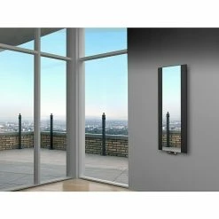 Der Design-Heizkörper Singapur ist durch sein exklusives Design mit mittig integriertem Spiegel ein Blickfang in jedem Wohnraum oder Badezimmer. Durch die Verwendung von Premium-Pulverlacken aus deutscher Herstellung wird eine exquisite Oberfläche kreiert, welche die Fingerabdrucks-Empfindlichkeit vermindert und gleichzeitig durch die diffuse Lichtbrechung an der Oberfläche dem Heizkörper ein edles Finish verleiht. Das kreative Designelement wird mit hochmodernen CNC – gesteuerten Maschinen hergestellt. Der Anschluss für den Vor- und Rücklauf des Heizkörpers befindet sich unten mittig, im Abstand von 50 mm. Geeignet zum Anschluss an eine Heizungsanlage oder Strombetrieb mit elektrischem Heizstab bis 500 Watt. Im Lieferumfang enthalten sind eine Wandhalterung, Schrauben, Dübel, ein Blindstopfen und ein Entlüftungsventil. Ein Mittelanschlussblock ist nicht im Lieferumfang enthalten, kann aber separat bei uns bestellt werden.