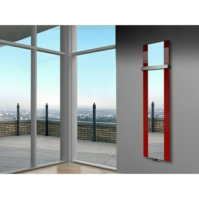 Der Design-Heizkörper Singapur ist durch sein exklusives Design mit mittig integriertem Spiegel ein Blickfang in jedem Wohnraum oder Badezimmer. Durch die Verwendung von Premium-Pulverlacken aus deutscher Herstellung wird eine exquisite Oberfläche kreiert, welche die Fingerabdrucks-Empfindlichkeit vermindert und gleichzeitig durch die diffuse Lichtbrechung an der Oberfläche dem Heizkörper ein edles Finish verleiht. Das kreative Designelement wird mit hochmodernen CNC – gesteuerten Maschinen hergestellt. Der Anschluss für den Vor- und Rücklauf des Heizkörpers befindet sich unten mittig, im Abstand von 50 mm. Geeignet zum Anschluss an eine Heizungsanlage oder Strombetrieb mit elektrischem Heizstab bis 500 Watt. Im Lieferumfang enthalten sind eine Wandhalterung, Schrauben, Dübel, ein Blindstopfen und ein Entlüftungsventil. Ein Mittelanschlussblock ist nicht im Lieferumfang enthalten, kann aber separat bei uns bestellt werden.
