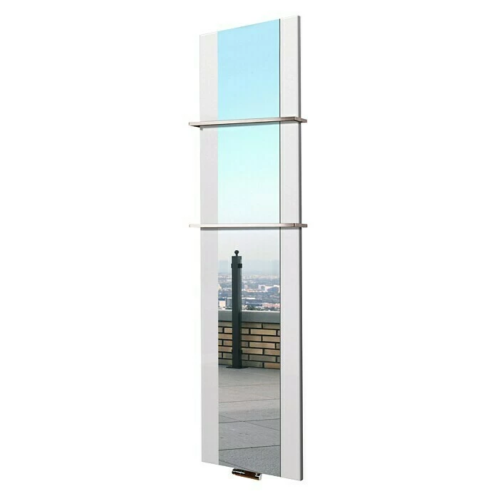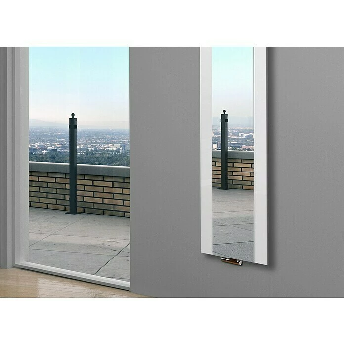 Der Design-Heizkörper Singapur ist durch sein exklusives Design mit mittig integriertem Spiegel ein Blickfang in jedem Wohnraum oder Badezimmer. Durch die Verwendung von Premium-Pulverlacken aus deutscher Herstellung wird eine exquisite Oberfläche kreiert, welche die Fingerabdrucks-Empfindlichkeit vermindert und gleichzeitig durch die diffuse Lichtbrechung an der Oberfläche dem Heizkörper ein edles Finish verleiht. Das kreative Designelement wird mit hochmodernen CNC – gesteuerten Maschinen hergestellt. Der Anschluss für den Vor- und Rücklauf des Heizkörpers befindet sich unten mittig, im Abstand von 50 mm. Geeignet zum Anschluss an eine Heizungsanlage oder Strombetrieb mit elektrischem Heizstab bis 500 Watt. Im Lieferumfang enthalten sind eine Wandhalterung, Schrauben, Dübel, ein Blindstopfen und ein Entlüftungsventil. Ein Mittelanschlussblock ist nicht im Lieferumfang enthalten, kann aber separat bei uns bestellt werden.