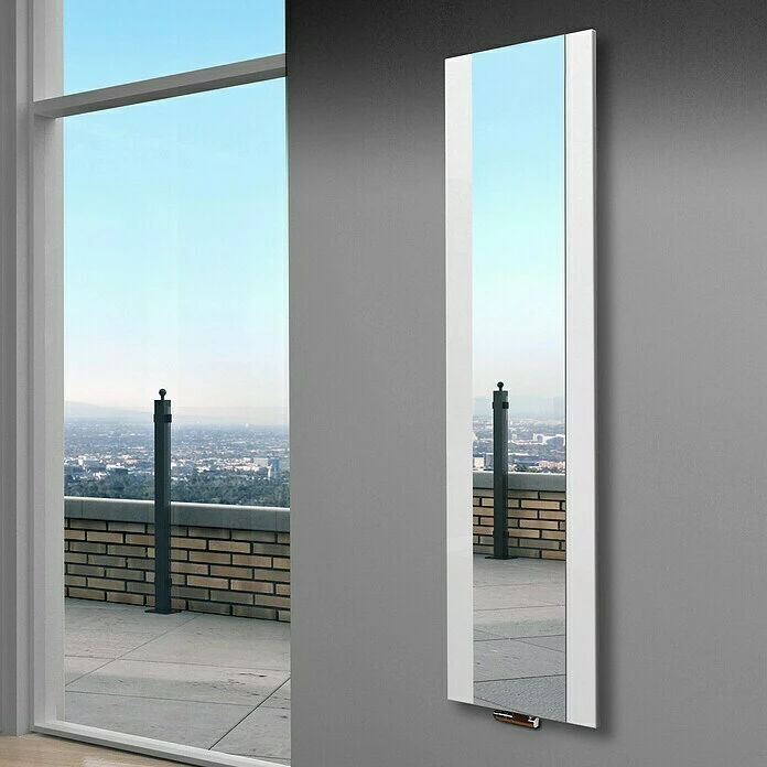 Der Design-Heizkörper Singapur ist durch sein exklusives Design mit mittig integriertem Spiegel ein Blickfang in jedem Wohnraum oder Badezimmer. Durch die Verwendung von Premium-Pulverlacken aus deutscher Herstellung wird eine exquisite Oberfläche kreiert, welche die Fingerabdrucks-Empfindlichkeit vermindert und gleichzeitig durch die diffuse Lichtbrechung an der Oberfläche dem Heizkörper ein edles Finish verleiht. Das kreative Designelement wird mit hochmodernen CNC – gesteuerten Maschinen hergestellt. Der Anschluss für den Vor- und Rücklauf des Heizkörpers befindet sich unten mittig, im Abstand von 50 mm. Geeignet zum Anschluss an eine Heizungsanlage oder Strombetrieb mit elektrischem Heizstab bis 500 Watt. Im Lieferumfang enthalten sind eine Wandhalterung, Schrauben, Dübel, ein Blindstopfen und ein Entlüftungsventil. Ein Mittelanschlussblock ist nicht im Lieferumfang enthalten, kann aber separat bei uns bestellt werden.