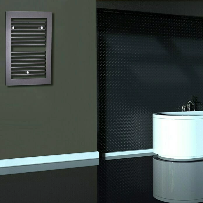 Der Design-Heizkörper Window 1 ist durch sein exklusives Design ein Blickfang in jedem Wohnraum. Ob im Bad oder im Wohnbereich – der Heizkörper gibt dem Raum mit seiner Ausstrahlung das gewisse Etwas und sorgt gleichzeitig für eine behagliche Wärme. Durch die Verwendung von strukturierten Premium-Pulverlacken aus deutscher Herstellung wird eine exquisite, leicht rauhe, metallische Oberfläche kreiert, welche die Fingerabdrucksempfindlichkeit vermindert und gleichzeitig durch die Lichtbrechung an der Oberfläche dem Heizkörper ein edles Finish verleiht. Der Badheizkörper ist mit je 2 Anschlüssen (oben und unten) im Abstand von 570 mm ausgestattet, die für eine einfache und problemlose Installation sorgen. Das Designobjekt ist zum Anschluss an Ihre Heizungsanlage geeignet oder auch mit Heizstab für den Anschluss an das Stromnetz erhältlich. Das Produkt ist ebenfalls in der Farbe Weiß erhältlich.