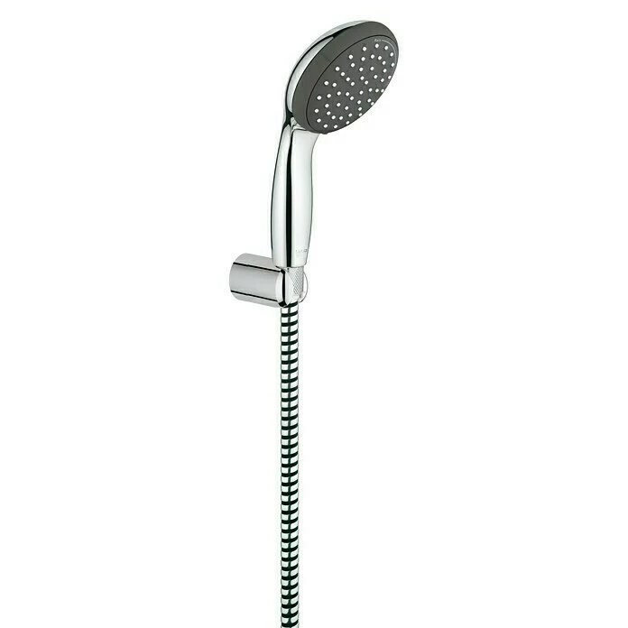 Das Brauseset Vitalio Start Duo von Grohe enthält eine Handbrause inklusive Wandhalter und Brauseschlauch. Die Handbrause verbraucht dank der eingebauten Wasserspartechnologie bis zu 40 % weniger Wasser. Der Grohe DreamSpray® verteilt auf jede einzelne Düse die gleiche Wassermenge und erzeugt so einen angenehm gleichmäßigen Strahl. Lästige Kalkablagerungen werden durch das integrierte SpeedClean Antikalk-System effektiv verhindert. Dank Grohe StarLight besticht diese Handbrause auch nach Jahren noch durch ihre glänzende Chromoberfläche. Nach dem Duschen mit einem trockenen Tuch abwischen – fertig.