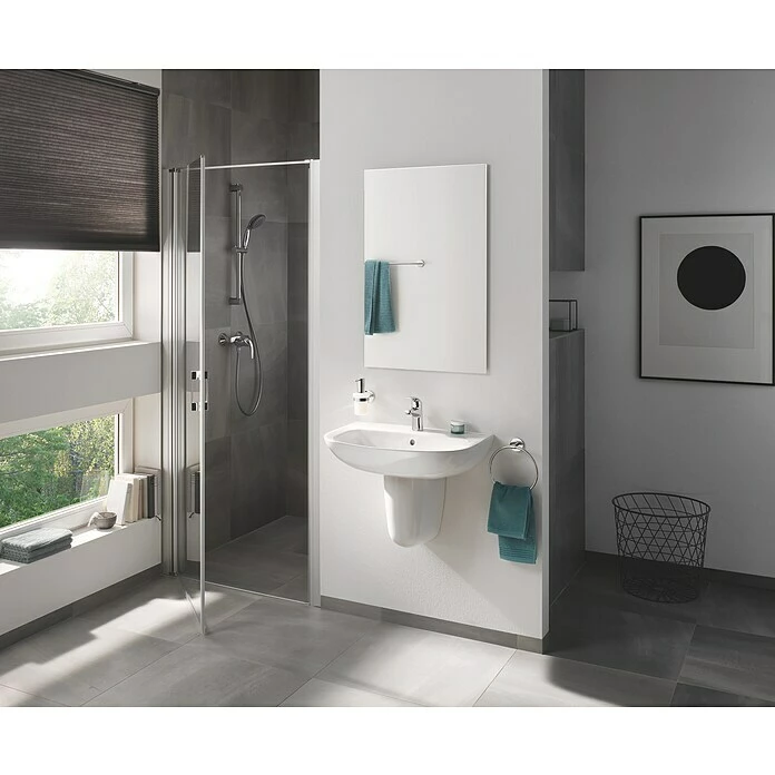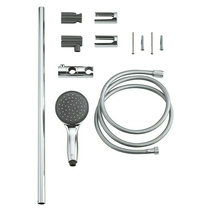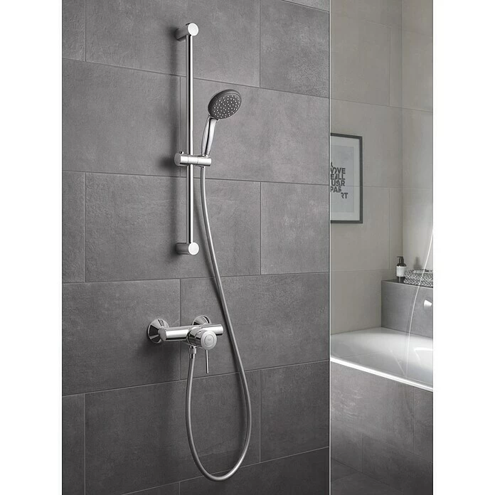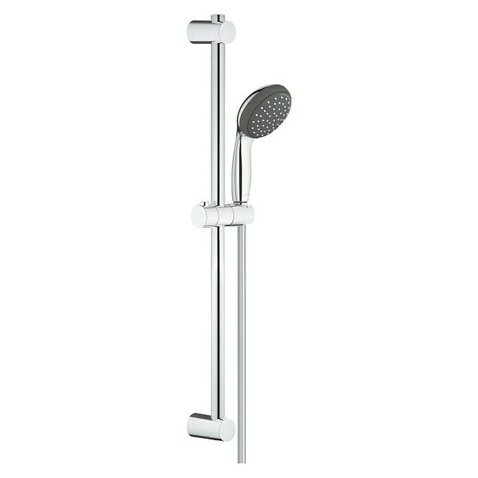 Bei der Brausegarnitur Vitalio Start von Grohe steht das Duschvergnügen im Vordergrund. Sie überzeugt mit ihrem klassischen Design und bietet als komfortable Komplettlösung alles Notwendige für Ihre Dusche. Die Handbrause in modern abgerundeter Form verfügt über 2 Strahlarten – den Rainstrahl und Jet – die Ihnen ein rundum berauschendes Duscherlebnis garantieren. Der Grohe DreamSpray® verteilt auf jede einzelne Düse die gleiche Wassermenge und erzeugt so einen angenehm gleichmäßigen Strahl. Lästige Kalkablagerungen werden durch das integrierte SpeedClean Antikalk-System effektiv verhindert. Der ShockProof Silikonring am Kopf schützt vor Beschädigung durch Herunterfallen der Brause. Mit QuickFix lässt sich die obere Konsole der Brausestange variabel an vorhandene Bohrlöcher anpassen. Zudem sorgt der flexible Vitalioflex Trend Brauseschlauch für eine einfache Handhabung. Er ist knick- und druckfest und bietet optimalen Komfort.