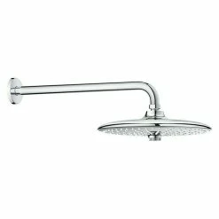 Das Kopfbrausenset Euphoria 260 von Grohe überzeugt durch ihre praktischen Eigenschaften. Sie bietet drei markante Strahlzonen, wobei das integrierte SpeedClean Antikalk-System lästige Kalkablagerungen effektiv verhindert. Um den gewünschten Strahl auszuwählen, muss die innovative Taste in der Mitte betätigt werden. Die Grohe DreamSpray® Technologie verteilt auf jede einzelne Düse die gleiche Wassermenge und erzeugt so einen angenehm gleichmäßigen Strahl. Dank des Kugelgelenks ist sie auch nach der Montage, die einfach und schnell durch Anschrauben an den Arm erfolgt, schwenkbar und kann so jederzeit den eigenen Bedürfnissen angepasst werden. Der Inner WaterGuide garantiert, dass die Oberfläche der Kopfbrause niemals zu heiß wird und schützt dabei gleichermaßen die glänzende Grohe StarLight Chromoberfläche gegen Beschädigungen durch Hitze.