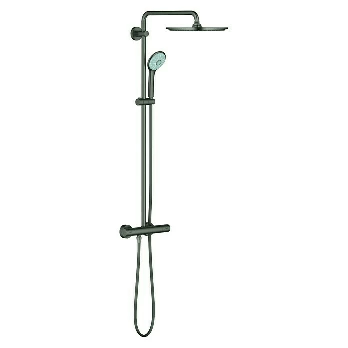 Mit dem Duschsystem Euphoria 310 von Grohe sorgen Sie ohne aufwändige Umbauarbeiten ganz schnell für mehr Entspannung im Bad. Die große Wellnesskopfbrause und die extravagante und praktische 3-Strahl-Handbrause schaffen ein angenehmes Duscherlebnis. Die DreamSpray®-Technologie verteilt das Wasser gleichmäßig auf jede einzelne Düse – ganz gleich, welche der unterschiedlichen Strahlarten Sie wählen. Außerdem besitzen die Brausen eine Speed-Clean-Funktion. Lästige Kalkablagerungen werden so durch die integrierten Anti-Kalknoppen effektiv verhindert und durch Reiben der Noppen gelöst. Die Massagehandbrause ist individuell höhenverstellbar mittels Gleitelement. Das Aufputz-Thermostat mit Aquadimmerfunktion ermöglicht den Wechsel zwischen Kopfbrause und Handbrause. Der flexible Silverflex-Brauseschlauch mit Twistfree verhindert effektiv das Verdrehen des Brauseschlauches. Die StarLight®-Oberfläche ist besonders kratzfest und farbecht und mit EcoJoy® sparen Sie am Wasser, aber nicht am Genuss.