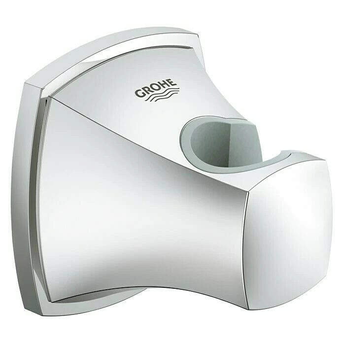 Der Brausehalter Grandera von Grohe hält Ihre Handbrause immer Griffbereit an der gewünschten Position. Als praktischer Helfer beeindruckt er mit seinem formschönen Design und ist in jedem Badezimmer einsetzbar. Der Brausehalter ist aus verchromtem Metall gefertigt und passt zu jeder Standard Handbrause.
