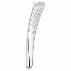 Die Handbrause Veris Stick von Grohe überzeugt durch ihre praktischen Eigenschaften. Sie bietet eine Strahlart, wobei das integrierte SpeedClean Antikalk-System lästige Kalkablagerungen effektiv verhindert. Die Grohe DreamSpray® Technologie verteilt auf jede einzelne Düse die gleiche Wassermenge und erzeugt so einen angenehm gleichmäßigen Strahl. Die Grohe StarLight® Oberfläche schützt den Brausekopf optimal und erfordert kaum Pflege.