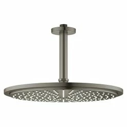 Das Kopfbrausenset Rainshower Cosmopolitan 310 von Grohe spart dank der integrierten EcoJoy Funktion Wasser und Energie und bietet gleichzeitig das perfekte Wassererlebnis. Sie bietet eine Strahlart, wobei das integrierte SpeedClean Antikalk-System lästige Kalkablagerungen effektiv verhindert. Die Grohe DreamSpray® Technologie verteilt auf jede einzelne Düse die gleiche Wassermenge und erzeugt so einen angenehm gleichmäßigen Strahl. Dank des Kugelgelenks ist sie auch nach der Montage, die einfach und schnell durch Anschrauben an den Arm erfolgt, schwenkbar und kann so jederzeit den eigenen Bedürfnissen angepasst werden. Die Grohe StarLight® Oberfläche schützt den Brausekopf optimal und erfordert kaum Pflege.