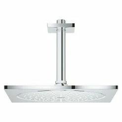 Das Kopfbrausenset Rainshower F-Series 10 von Grohe spart dank der integrierten EcoJoy Funktion Wasser und Energie und bietet gleichzeitig das perfekte Wassererlebnis. Sie bietet eine Strahlart, wobei das integrierte SpeedClean Antikalk-System lästige Kalkablagerungen effektiv verhindert. Die Grohe DreamSpray® Technologie verteilt auf jede einzelne Düse die gleiche Wassermenge und erzeugt so einen angenehm gleichmäßigen Strahl. Dank des Kugelgelenks ist sie auch nach der Montage, die einfach und schnell durch Anschrauben an den Arm erfolgt, schwenkbar und kann so jederzeit den eigenen Bedürfnissen angepasst werden. Die Grohe StarLight® Oberfläche schützt den Brausekopf optimal und erfordert kaum Pflege.