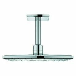 Das Kopfbrausenset Rainshower SmartActive 310 Cube von Grohe stellt mit ihren umfassenden Funktionen eine ausgezeichnete Kombination zweier Optionen dar: Sie ermöglicht in einer Brause sowohl die stimulierende Dusche am Morgen als auch ein entspannendes Duscherlebnis vor dem Zubettgehen. Das Brauseset verfügt über zwei Strahloptionen, zwischen denen Sie wechseln oder die Sie kombinieren können. Wählen Sie das gewünschte Strahlbild einfach durch Drücken und Drehen des separat erhältlichen Grohtherm SmartControl Thermostats oder über die Grohe SmartControl-Armatur aus. Die Grohe DreamSpray® Technologie verteilt auf jede einzelne Düse die gleiche Wassermenge und erzeugt so einen angenehm gleichmäßigen Strahl. Dank des Kugelgelenks die Kopfbrause auch nach der Montage, die einfach und schnell durch Anschrauben an den Arm erfolgt, schwenkbar und kann so jederzeit den eigenen Bedürfnissen angepasst werden. Die Grohe StarLight® Oberfläche schützt den Brausekopf optimal und erfordert kaum Pflege. Zum komplettieren des Sets muss das Rainshower Universal-Rohbauset zusätzlich erworben werden.