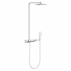 Das Duschsystem Rainshower SmarControl Mono 360 von Grohe ist ein luxuriöses Duschsystem mit einfacher Bedienung und dreifacher Massage. Mit der neuartigen SmartControl Bedienung können Sie per Druck- und Drehknopf die gewünschte Brause, Strahlart und Wassermenge ganz einfach einstellen und sogar kombinieren. Zur Auswahl stehen jeweils zwei Strahlarten für Kopf- und Handbrause. So ist z. B. der Grohe TrioMassage Strahl der XXL-Kopfbrause entspannend und stimulierend zugleich. Auch in puncto Sicherheit lässt das System keine Wünsche offen: Die Grohe TurboStat® Technologie verhindert Temperaturschwankungen, die SafeStop Sperre schützt vor zu heißem Wasser und Grohe CoolTouch® sorgt dafür, dass die Armatur sich nicht aufheizt. Aber nicht nur Ihre empfindliche Haut, auch die Umwelt wird geschont: Die integrierte Grohe EcoJoy® Wasserspar-Funktion macht’s möglich! Diese und weitere praktische Funktionen sind eingebettet in ein formvollendetes Design.
