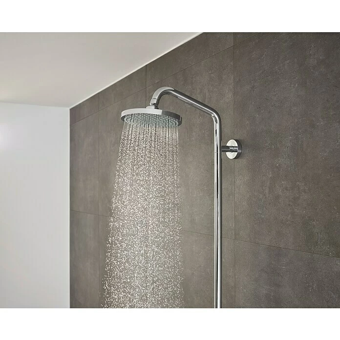 | Funktionen Duschsystem | Antikalk-Funktion, Kopfbrause schwenkbar, Brausehalter höhenverstellbar, Heißwassersperre |