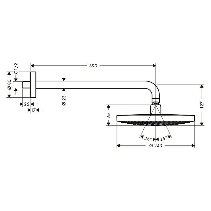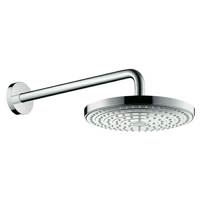 Das Kopfbrausen-Set Raindance Select S 240 von Hansgrohe begeistert mit elegantem, klarem Design und innovativen Funktionen. Die Select-Technologie ermöglicht ein bequemes Umschalten zwischen zwei verschiedenen Strahlarten auf Knopfdruck. AirPower reichert das Wasser mit Luft an, was das Strahlbild fülliger und weicher macht und gleichzeitig den Verbrauch senkt. Dank der Quick-Clean Funktion verschwinden lästige Kalkablagerungen im Handumdrehen: Rückstände können von den flexiblen Anti-Kalk-Noppen einfach abgerubbelt werden. Über ein Kugelgelenk ist die Kopfbrause im Winkel verstellbar. Die hochwertig verchromte Oberfläche ist besonders pflegeleicht und zur besseren Reinigung lässt sich der gesamte Strahlboden abnehmen. Im Set enthalten ist ein 39 cm langer Brausearm aus Metall, der mit seinem genormten ½“-Anschluss passgenau montierbar ist.