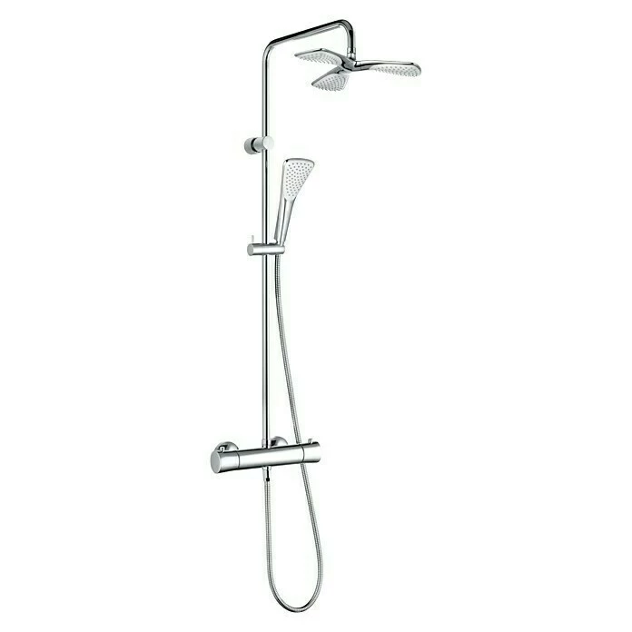 Das Überkopfbrause-Set Fizz von Kludi ist die perfekte Lösung für ein luxuriöses Duscherlebnis mit Kopf- und Handbrause. Das komfortable Komplettset besteht aus einer speziell geformten Kopfbrause und einer vollverchromten Handbrause. Durch das Antikalk-System können Kalkablagerungen an den Düsen durch leichtes Wischen schnell und einfach beseitigt werden. Des Weiteren sind ein höhenverstellbares Steigrohr (96 – 126 cm), eine Thermostatarmatur mit Heißwassersperre und ein Brauseschlauch Bestandteil des Duschsystems. Letzterer ist mit ½“ Anschlüssen versehen und passt auf jeden handelsüblichen Anschluss. Dank der Anti-Twist-Eigenschaft wird das lästige Verdrehen des Schlauchs verhindert. Das erforderliche Montagematerial ist bereits im Lieferumfang enthalten.
