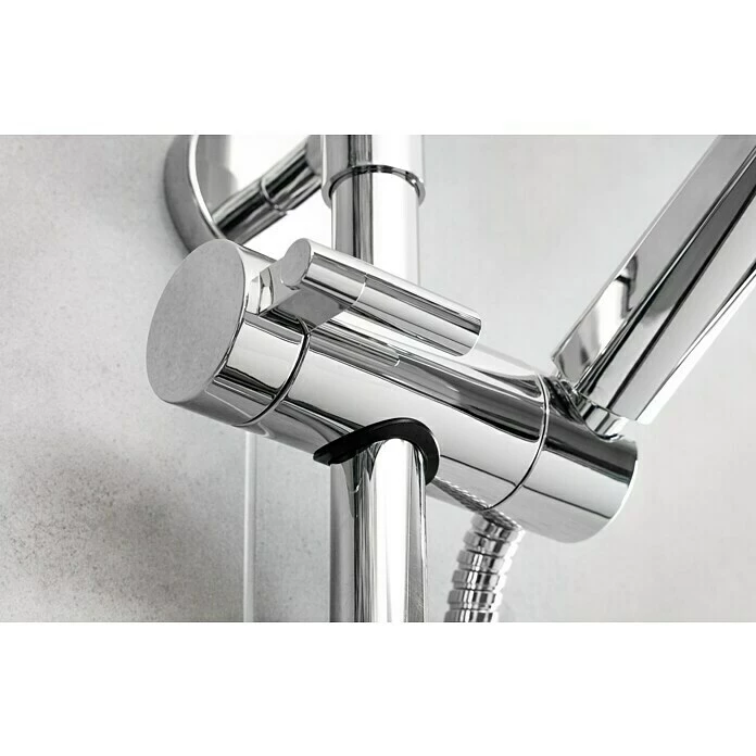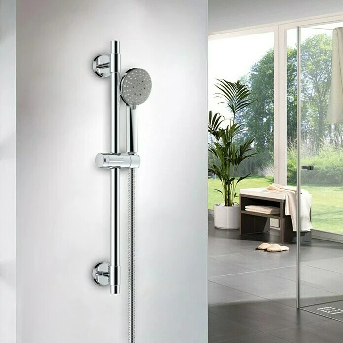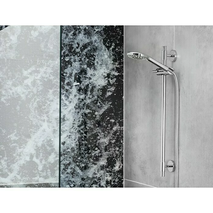 Die Brausegarnitur Spitter von Mixomat besteht aus der Handbrause, einer Brausestange und einem Schlauch (150 cm). Die Handbrause bietet drei Strahlarten, zwischen denen man einfach per drehbarer Strahlscheibe wechseln kann. Das Easy Clean System verhindert nachhaltig Kalkablagerungen an den Düsen. Die Wandhalter der Brausestange aus rostfreiem Edelstahl sind flexibel einstellbar, so dass bestehende Bohrlöcher genutzt werden können. Die Anbringung kann per Bohren mit dem im Lieferumfang enthaltenen Montagematerial erfolgen oder per Kleben mit dem Nie wieder bohren Befestigungskit BK20 (nicht im Lieferumfang enthalten). Alle Anschlüsse sind auf ½“ genormt und können somit mit allen anderen Mixomat Produkten, wie zum Beispiel Armaturen, Steigrohren oder Kopfbrausen kombiniert werden. Durch den verstellbaren Konusgleiter kann die Höhe der Handbrause den eigenen Bedürfnissen angepasst werden. Der Brauseschlauch ist aus Edelstahl gefertigt und doppelt gewickelt, wodurch er besonders robust und langlebig ist. Zusätzlich besitzt er eine Anti-Twist-Eigenschaft, welche lästiges Verdrehen des Schlauchs verhindert. Alle Bestandteile der Garnitur, die mit Wasser in Verbindung kommen, sind KTW/W270 zertifiziert und erfüllen somit alle gültigen Trinkwassernormen.
