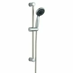 Die Brausegarnitur CUBA besteht aus einer Wandstange mit höhenverstellbarem Konusgleiter, einer ergonomisch geformten Handbrause sowie einem 1,50 m langen Brauseschlauch. Mittels drehbarer Strahlscheibe kann zwischen vier verschiedenen Strahlarten umgeschaltet werden. Dank des integrierten EASY Clean Antikalk-Systems werden Kalkablagerungen an der Handbrause effektiv verhindert.