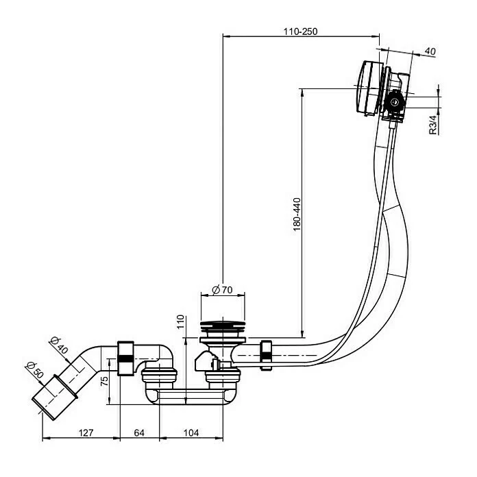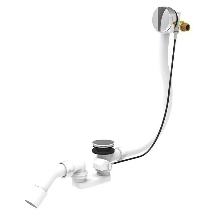 Die Ottofond Luxus Ab- und Überlaufgarnitur eignet sich hervorragend für Ihre Badewanne. Das Überlaufrohr ist flexibel und damit passgenau und problemlos zu montieren. Darüber hinaus verfügt die Garnitur über einen Perlator für den Wassereinlauf. Am Überlauf befindet sich ein Drehexcentergriff mit dem sich der Ablaufstopfen öffnen und verschließen lässt. Somit muss nicht in das Wasser gegriffen werden, um den Auslass zu betätigen. Das Abgangsrohr hat einen 40 mm und einen 50 mm Anschluss und kann problemlos mit HT-Rohren verlängert werden.
