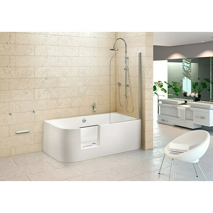 Die Dusch-Badewanne Pueblo von Ottofond (abgebildet als Modell B = Links) ist mit einer herausnehmbaren Tür ausgestattet (magnetische Arretierung der Tür in der Wanne). Gerade wenn Sie in Ihrer Bewegung eingeschränkt oder etwas wacklig auf den Beinen sind, die Bewegungen schmerzen und Sie nicht mehr die nötige Sicherheit beim Einstieg in eine herkömmliche Badewanne verspüren, verhilft Ihnen die schwenkbare Tür zu einem leichten Einstieg. Die Herstellung aus doppelwandigem Sanitäracryl garantiert eine exzellente Qualität. Die Badewanne ist mit einer verchromten Ablaufgarnitur ausgestattet und auch in der spiegelverkehrten Ausführung (Modell A = Rechts) lieferbar.