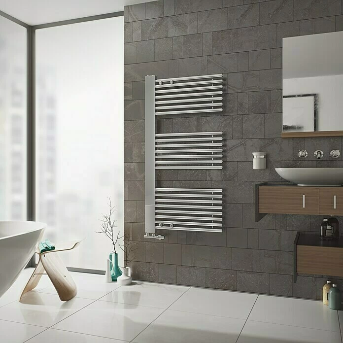 Der Ximax Badheizkörper C5 ist seitlich offen gestaltet und in Kombination mit dem dominanten verchromten seitlichen Profil ein Highlight für jedes Badezimmer, welcher angenehme Wärme spendet. Der Badheizkörper kann innerhalb jeder gängigen Zentralheizung eingebaut werden und ist mit jedem handelsüblichen Thermostatventil kombinierbar. Alle Ximax Designheizkörper werden in Europa aus geprüften Werkstoffen und mittels modernster Fertigungstechnologien produziert. Basiswerkstoff bildet dabei kaltgewalzter Radiatorengütestahl, welcher entsprechend vorbehandelt und danach mit hochwertigsten Materialien verchromt wird. Die Verchromung sorgt dabei für eine edle Optik.