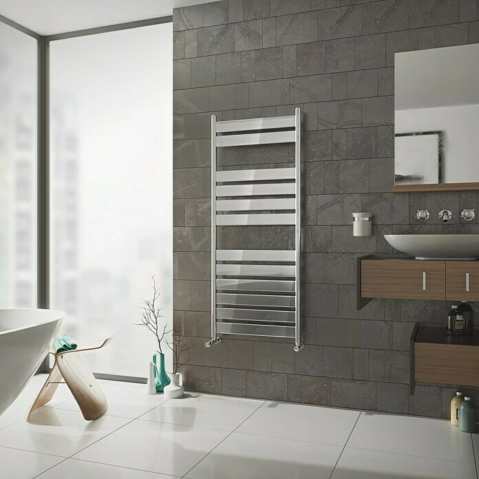 Der Ximax Badheizkörper C6 ist ein Designheizkörper in elegantem Design, welcher angenehme Wärme spendet und zusätzlich als idealer Handtuchwärmer und Handtuchtrockner Verwendung findet. Die flachen verchromten Querpaneele verleihen dem modernen Badheizkörper den Charme eines Paneelheizkörpers. Der Badheizkörper kann innerhalb jeder gängigen Zentralheizung eingebaut werden und ist mit jedem handelsüblichen Thermostatventil kombinierbar. Alle Ximax Designheizkörper werden in Europa aus geprüften Werkstoffen und mittels modernster Fertigungstechnologien produziert. Basiswerkstoff bildet dabei kaltgewalzter Radiatorengütestahl, welcher entsprechend vorbehandelt und danach mit hochwertigsten Materialien verchromt wird. Die Verchromung sorgt dabei für eine edle Optik.