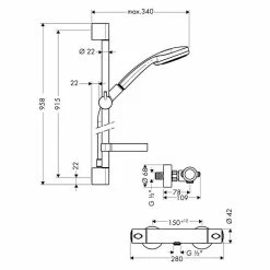 BAUHAUS Hansgrohe Brause-Set Croma 100 Multi/Ecostat Comfort Lochabstand: 62,5 Cm, Chrom