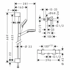 BAUHAUS Hansgrohe Crometta Brause-Set Vario/Ecostat 1001 SL Lochabstand: 62,5 Cm, Chrom