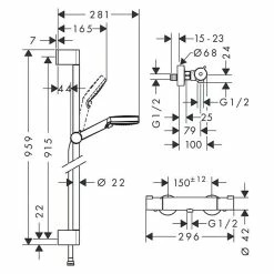 BAUHAUS Hansgrohe Crometta Brause-Set Vario/Ecostat 1001 CL Lochabstand: 91,5 Cm, Chrom/Weiß